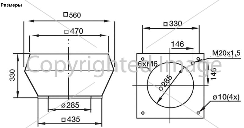 Крышный зонт устанавливается на воздухозаборном или воздуховыпускном отверстях. Пустой (без электродвигателя и рабочего колеса) корпус крышных вентиляторов DVS/DHS/DVN. Размеры соответствуют размерам крышных вентиляторов.