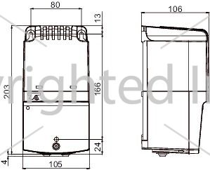 Однофазный регулятор, который управляет скоростью вентилятора, изменяя подаваемое напряжение (пять ступеней). Кажадая скорость задается вручную, рукояткой на корпусе. Регулятор имеет две рукоятки управления, переключение между ними осуществляется автоматически при помощи внешнего устройства (термостат, таймер и т.п.). Например: днём вентилятор работает на 4-й скорости (уставка первой рукоятки), а вечером внешний таймер (дополнительная принадлежность) переключает вентилятор на 1-ю скорость (которая выставлена на второй рукоятке). Лампа индикатора на передней панели показывает, что регулятор работает. Трансформатор имеет предохранитель, который при срабатывании перезапускается вручную, кнопкой на корпусе. Корпус RE изготовлен из негорючего термопластика. Подаваемое напряжение 230 В 50/60 Гц.